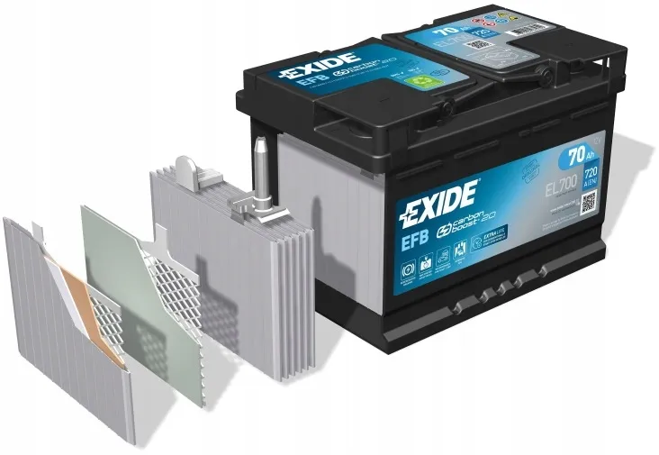 Akumulator EFB (Enhanced Floaded Battery) marki Exide jest uznawany za najbardziej zaawansowany w przemyśle motoryzacyjnym. Powstał dzięki inwestycji firmy w prace badawczo-rozwojowe i doświadczeniu zdobytemu we współpracy z wiodącymi producentami samochodów. Akumulator EFB najnowszej generacji oferuje znacznie lepszą zdolność przyjmowania ładunku i dłuższą żywotność w pracy cyklicznej co jest wynikiem przełomu w pracach badawczo-rozwojowych w zakresie stopów ołowiowych i wyjątkowych dodatków węglowych. Akumulatory Exide EFB doskonale współpracują z systemami Start-Stop hamowania regeneracyjnego i innymi funkcjami oszczędzania paliwa.