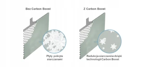 W wyniku rozładowywania akumulatora nieprzewodzące cząsteczki siarczanów stopniowo pokrywają płyty ujemne izolując je od elektrolitu. W takiej sytuacji duża ilość energii jest wykorzystywana na rozpuszczenie siarczanów co obniża efektywność ładowania. Wysoko powierzchniowy węgiel w akumulatorach Centra Futura Carbon Boost zapewnia doskonałe przewodnictwo dzięki czemu siarczany rozpuszczają się znacznie szybciej.