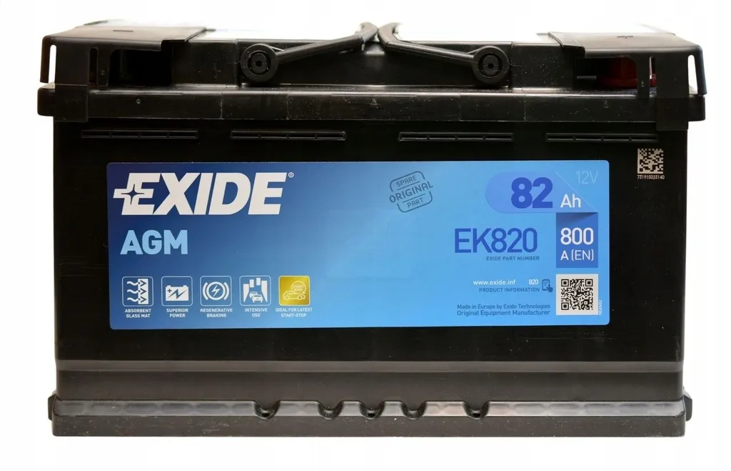Kod producenta: EXIDE AGM 82AH_800A EK820