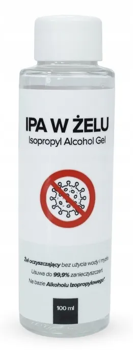 IPA w żelu to co najmniej 60-cio procentowy roztwór Propan-2-olu. Ma właściwości oczyszczające usuwa do 99% zanieczyszczeń. Pozwala na oczyszczenie rąk bez użycia wody i mydła.