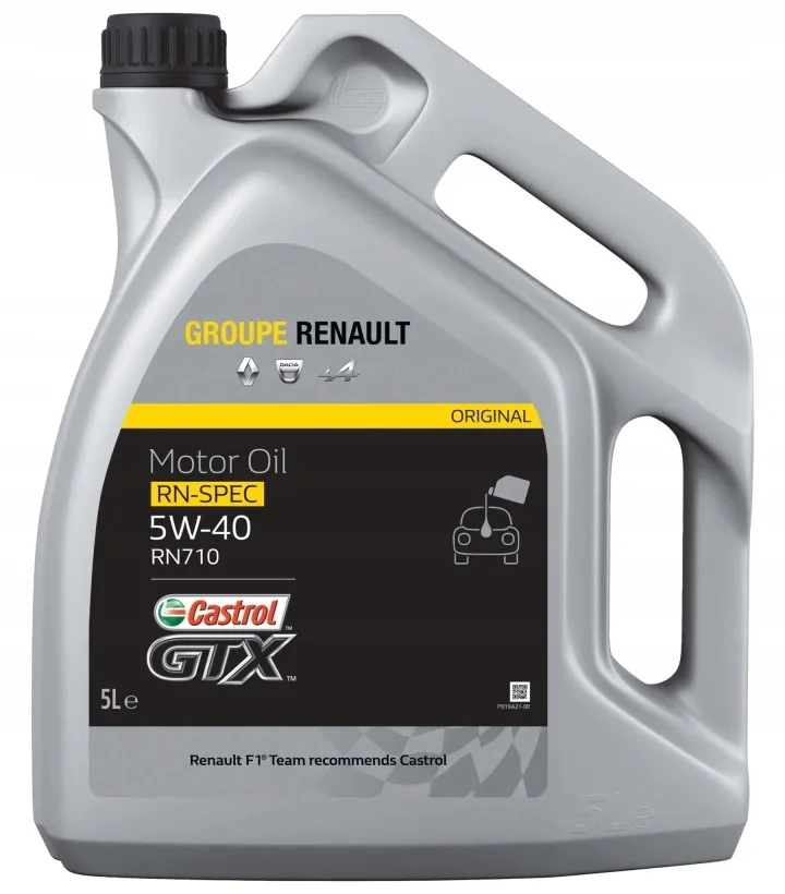 Renault - Castrol GTX RN-SPEC 5W-40 RN 710 jest w pełni syntetycznym olejem do silników benzynowych i Diesla nie wyposażonych w dodatkowe układy oczyszczani spalin (takie jak np. filtry DPF) w których nie stosuje się wydłużonych przebiegów pomiędzy wymianami oleju.