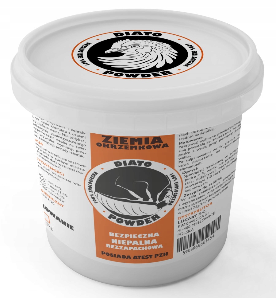 ⛔ Z uwagi na krystaliczną budowę cząsteczek ziemi okrzemkowej należy unikać jej długotrwałego wdychania przez ludzi. Przechowywać w suchym miejscu niedostępnym dla dzieci! ⛔