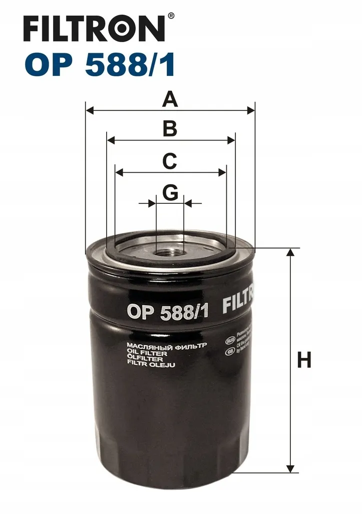 Dodatkowe informacje o Filtr oleju OP588 FILTRONParametryRodzaj filtra: Filtr przykręcanyWysokość [mm]: 133Wymiar gwintu: 1-12 UNFŚrednica zewnętrzna [mm]: 93Średnica wewnętrzna 1 [mm]: 72Średnica wewnętrzna 2 [mm]: 55Średnica wewnętrzna 1 [mm]: 73