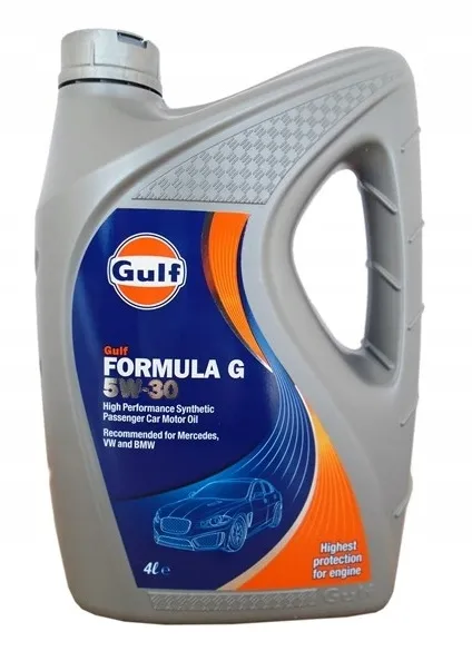Gulf Formula G 5W-30 jest najwyższej klasy olejem silnikowym do samochodów osobowych wyprodukowanym z najlepszej jakości baz syntetycznych i najnowocześniejszego pakietu dodatków. Gulf Formula G 5W-30 został zaprojektowany do użycia w najnowszych turbodoładowanych wysokiej mocy silnikach benzynowych i diesla montowanych w samochodach osobowych SUV-ach autach dostawczych i ciężarówkach. Technologia zastosowana w Gulf Formula G 5W-30 pozwala na długie przebiegi między wymianami bez tworzenia się osadów w silniku i na turbosprężarce tak aby zapewnić osiąganie założonej mocy i momentu obrotowego w całym okresie eksploatacji.