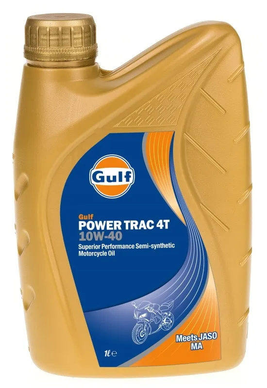 Gulf PowerTrac 4T 10W-40 jest półsyntetycznym olejem do czterosuwowych silników benzynowych zaprojektowany tak aby spełnić wymagania najnowszych producentów silników motocyklowych. Jest wytwarzany z najwyższej jakości baz olejowych i zaawansowanych pakietów dodatków które przewyższają większość wymagań stawianych przez 4-suwowe silniki motocykli. Produkt zapewnia doskonałą ochronę silnika skrzyni biegów oraz mokrego sprzęgła używanych w motocyklach oraz zapewniają niezawodne ich działanie nawet w ciężkich warunkach ich użytkowania. Produkt nadaje się do użytku w szerokim zakresie temperatur zewnętrznych. Olej przewyższa wymagania specyfikacji API SL i JASO MA 2 a także wymagania wiodących światowych producentów motocykli czterosuwowych.