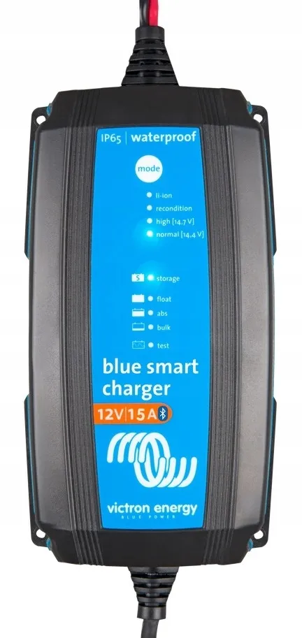 Ładowarka Blue Smart Charger IP65 holenderskiej firmy Victron Energy to nowa profesjonalna ładowarka akumulatorów z wbudowanym łączem Bluetooth. Ładowarki Blue Smart IP65 można używać do urządzeń warsztatowych oraz pojazdów silnikowych takich jak samochody motocykle samochody kempingowe a także do łodzi.