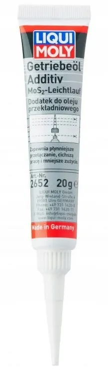 Dodatek do olei przekładniowych z MoS2 (dwusiarczek molibdenu) tworzy bardzo odporny film smarny na wszystkich częściach podlegających tarciu. Dzięki właściwościom zmniejszającym tarcie dodatek do oleju przekładniowego przyczynia się do mniejszego zużycia części podlegających tarciu oraz do niższej temperatury pracy przekładni. Dzięki temu praca przekładni staje się cichsza i bardzo płynna. Dzięki zmniejszeniu tarcia znacznie wzrasta niezawodność przekładni.