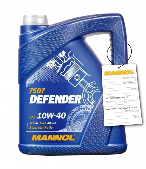 Mannol Defender 10W-40 – uniwersalny wielosezonowy półsyntetyczny olej silnikowy z hydrosyntetyczną bazą do nowoczesnych silników benzynowych i diesla bez i z turbodoładowaniem. Jest on wytwarzany z zastosowaniem unikalnej technologii StahlSynt redukującej zużycie. Zapewnia wysoki stopień ochrony dla nowych samochodów osobowych jak i dla samochodów z dużym przebiegiem. Wydłuża okresy między wymianą oleju. Mannol Defender zapewnia bezpieczne spalanie przy wysokich obciążeniach i częstych zmianach temperatur.