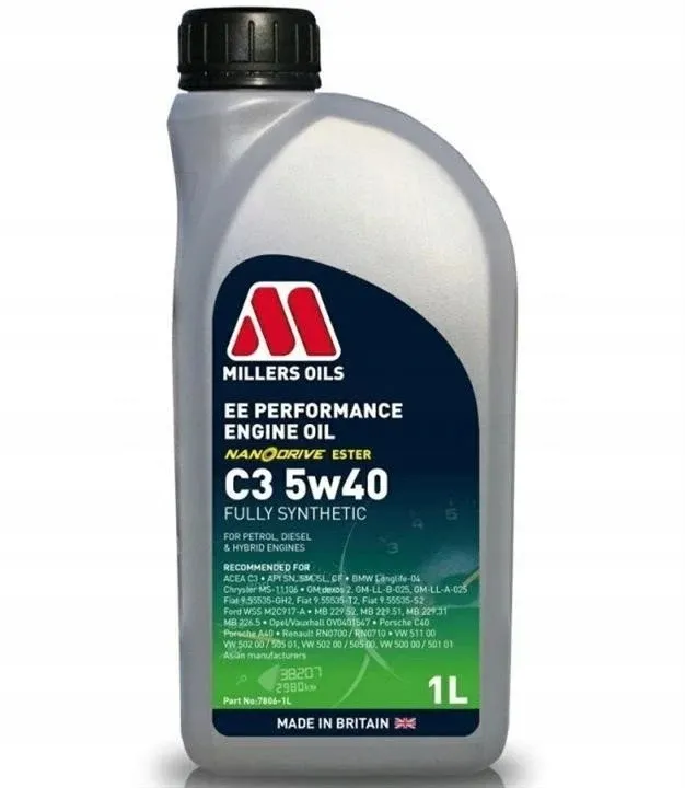 Olej silnikowy klasy performance wykorzystujący technologię NANODRIVE (Low Friction Technology) oraz estry syntetyczne do silników wymagających oleju o specyfikacji ACEA C3 5w40. Rekomendowany do samochodów z silnikami z pompowtryskiwaczami grupy VW a także Lamborghini Seat Skoda Porsche GM BMW czy Mercedes Benz. Następca oleju 7806 Millers Oils EE Longlife 5w40.