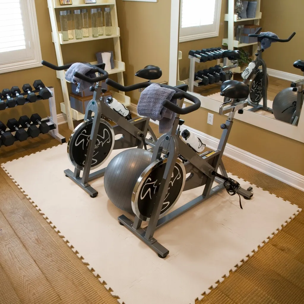 Maty z pianki EVA w kształcie puzzli doskonale sprawdzają się jako podkład pod ciężkie maszyny takie jak rowerki stacjonarne czy bieżnie. Dzięki swojej elastyczności i wytrzymałości skutecznie amortyzują wibracje chroniąc podłogę przed zarysowaniami i odkształceniami a jednocześnie redukując hałas powstający podczas intensywnych ćwiczeń. Modułowa budowa pozwala na idealne dopasowanie maty do wielkości urządzenia co zapewnia stabilność i bezpieczeństwo w trakcie użytkowania. To praktyczne rozwiązanie zarówno do domowych siłowni jak i profesjonalnych sal treningowych które pozwala na utrzymanie estetyki pomieszczenia i zwiększa komfort codziennego treningu.
