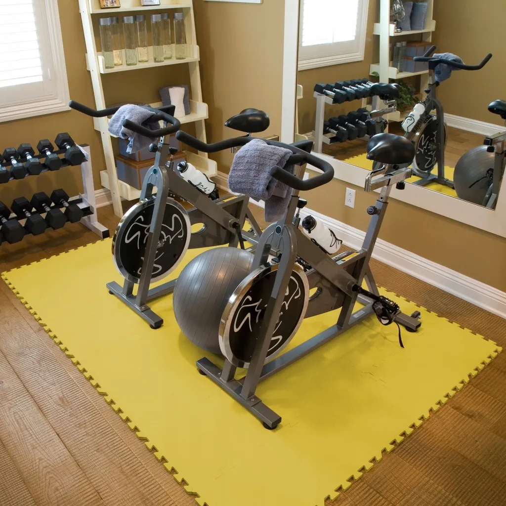 Maty z pianki EVA w kształcie puzzli doskonale sprawdzają się jako podkład pod ciężkie maszyny takie jak rowerki stacjonarne czy bieżnie. Dzięki swojej elastyczności i wytrzymałości skutecznie amortyzują wibracje chroniąc podłogę przed zarysowaniami i odkształceniami a jednocześnie redukując hałas powstający podczas intensywnych ćwiczeń. Modułowa budowa pozwala na idealne dopasowanie maty do wielkości urządzenia co zapewnia stabilność i bezpieczeństwo w trakcie użytkowania. To praktyczne rozwiązanie zarówno do domowych siłowni jak i profesjonalnych sal treningowych które pozwala na utrzymanie estetyki pomieszczenia i zwiększa komfort codziennego treningu.