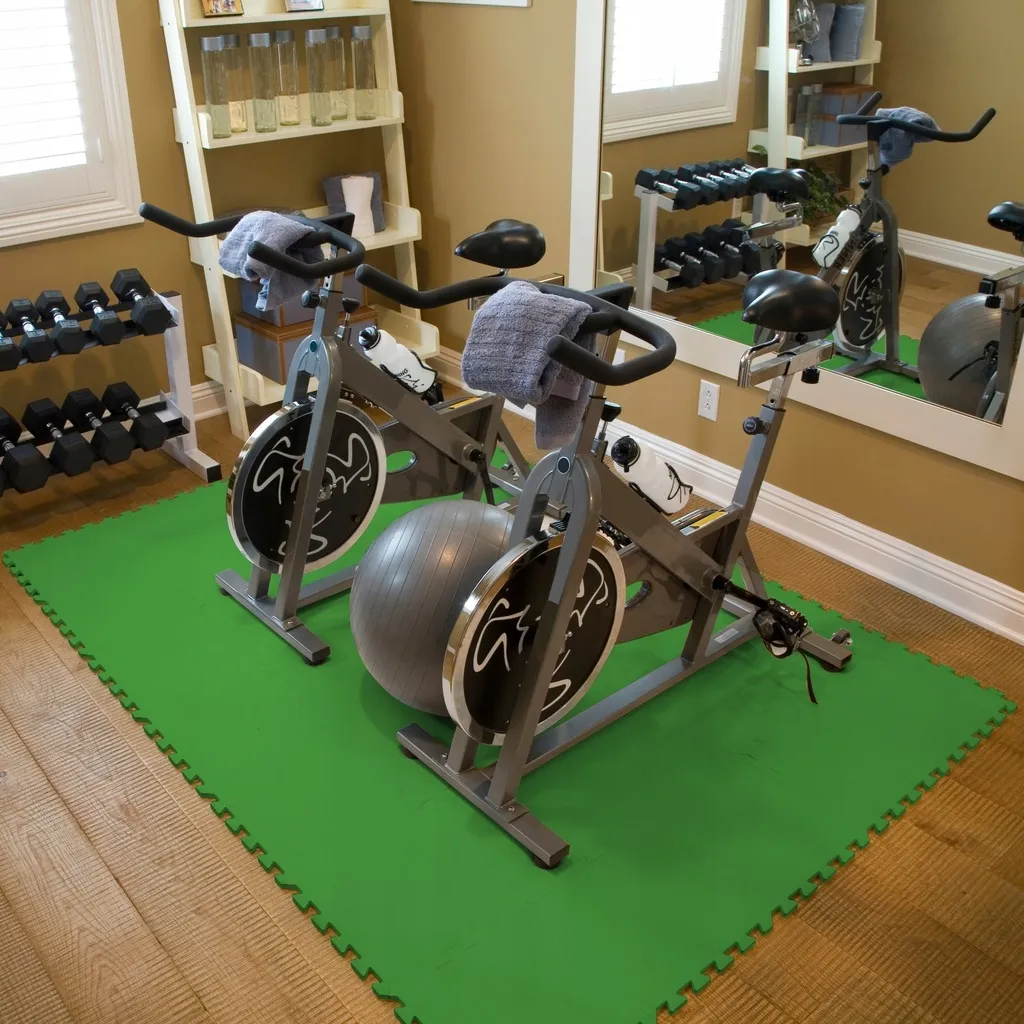 Maty z pianki EVA w kształcie puzzli doskonale sprawdzają się jako podkład pod ciężkie maszyny takie jak rowerki stacjonarne czy bieżnie. Dzięki swojej elastyczności i wytrzymałości skutecznie amortyzują wibracje chroniąc podłogę przed zarysowaniami i odkształceniami a jednocześnie redukując hałas powstający podczas intensywnych ćwiczeń. Modułowa budowa pozwala na idealne dopasowanie maty do wielkości urządzenia co zapewnia stabilność i bezpieczeństwo w trakcie użytkowania. To praktyczne rozwiązanie zarówno do domowych siłowni jak i profesjonalnych sal treningowych które pozwala na utrzymanie estetyki pomieszczenia i zwiększa komfort codziennego treningu.