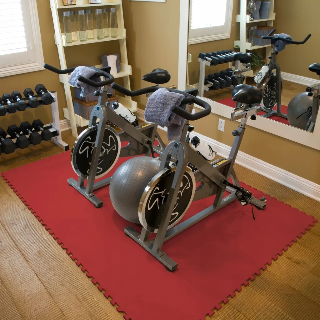 Maty z pianki EVA w kształcie puzzli doskonale sprawdzają się jako podkład pod ciężkie maszyny takie jak rowerki stacjonarne czy bieżnie. Dzięki swojej elastyczności i wytrzymałości skutecznie amortyzują wibracje chroniąc podłogę przed zarysowaniami i odkształceniami a jednocześnie redukując hałas powstający podczas intensywnych ćwiczeń. Modułowa budowa pozwala na idealne dopasowanie maty do wielkości urządzenia co zapewnia stabilność i bezpieczeństwo w trakcie użytkowania. To praktyczne rozwiązanie zarówno do domowych siłowni jak i profesjonalnych sal treningowych które pozwala na utrzymanie estetyki pomieszczenia i zwiększa komfort codziennego treningu.
