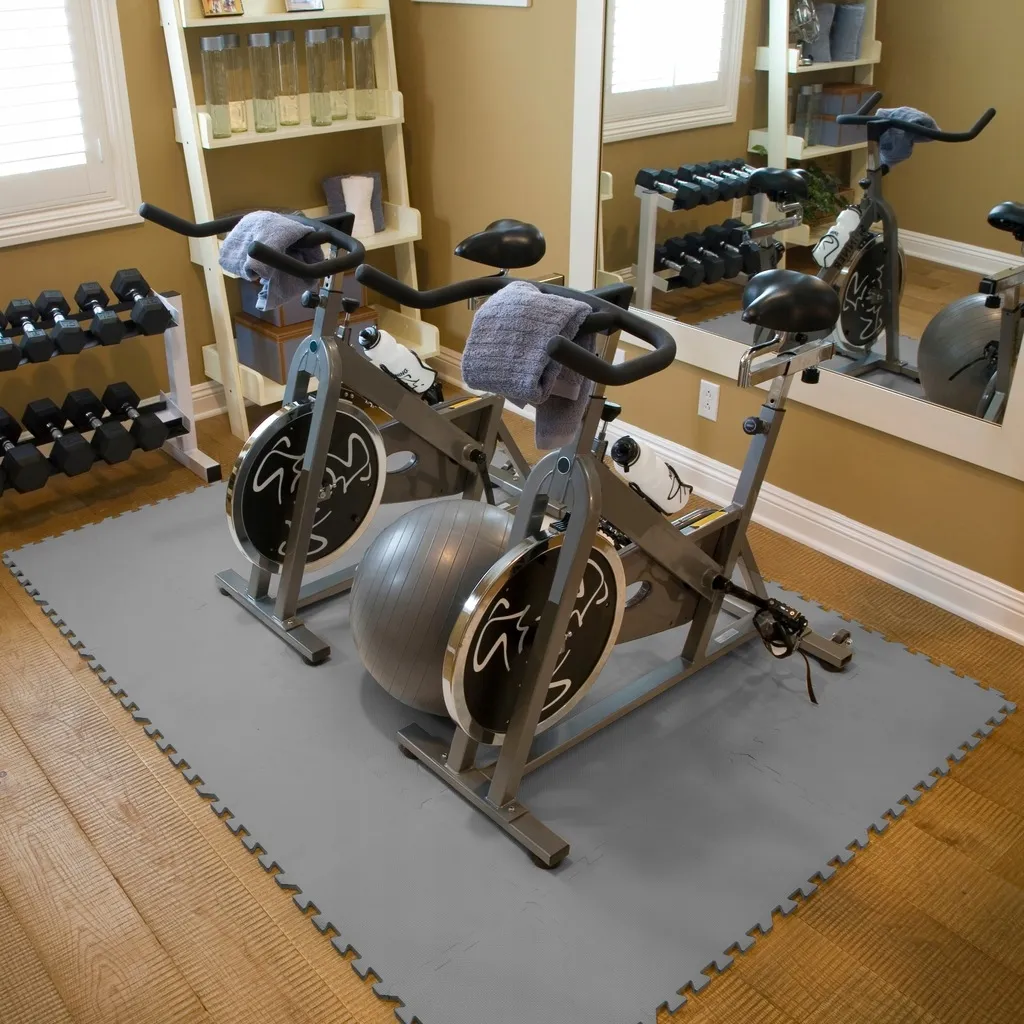 Maty z pianki EVA w kształcie puzzli doskonale sprawdzają się jako podkład pod ciężkie maszyny takie jak rowerki stacjonarne czy bieżnie. Dzięki swojej elastyczności i wytrzymałości skutecznie amortyzują wibracje chroniąc podłogę przed zarysowaniami i odkształceniami a jednocześnie redukując hałas powstający podczas intensywnych ćwiczeń. Modułowa budowa pozwala na idealne dopasowanie maty do wielkości urządzenia co zapewnia stabilność i bezpieczeństwo w trakcie użytkowania. To praktyczne rozwiązanie zarówno do domowych siłowni jak i profesjonalnych sal treningowych które pozwala na utrzymanie estetyki pomieszczenia i zwiększa komfort codziennego treningu.