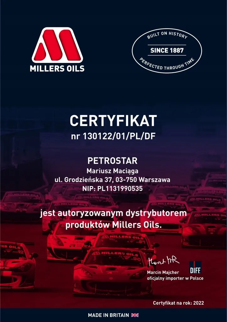 Producent najwyższej jakości olejów silnikowych olejów przekładniowych oraz dodatków do paliw. Istnieje od 1887 roku a środki smarne powstają w Brighouse w Anglii. Przy tworzeniu produktów liczy się wyłącznie najwyższa bezkompromisowa jakość. To co ich cechuje to zaawansowanie technologiczne innowacyjność oraz elastyczność. Używają najlepszych olejów bazowych najnowszych dodatków do ich produkcji. Jest światowym liderem w dziedzinie stosowania nanotechnologii w olejach silnikowych oraz przekładniowych. Produkty testują w motorsporcie. Millers Oils to laureat wielu nagród zarówno za przełomowe technologie jak i za rozwój. Kochają samochody i tworzą środki smarne z pasją z dbałością o najmniejsze szczegóły po to aby zapewnić najlepsze osiągi i maksymalną ochronę silnika oraz innych podzespołów. Od 2008 roku produkty Millers Oils dostępne są w Polsce. Od 2012 roku Millers Oils dysponuje jednym z najlepszych w Europie laboratoriów badających środki smarne.