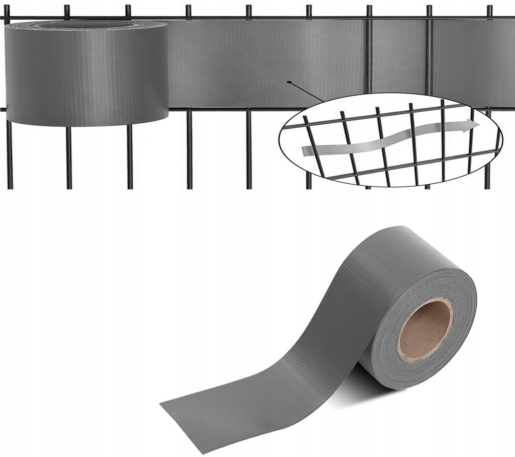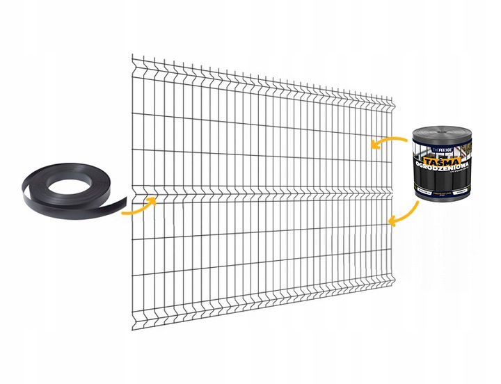 W przypadku ogrodzeń 3D aby uzyskać efekt szczelnego ogrodzenia należy zastosować dodatkowo kompatybilne z wymiarami przetłoczeń taśmy ogrodzeniowe o szerokości 19 cm. W ten sposób osiągnięty zostanie efekt pełnego i szczelnego ogrodzenia bez prześwitów.