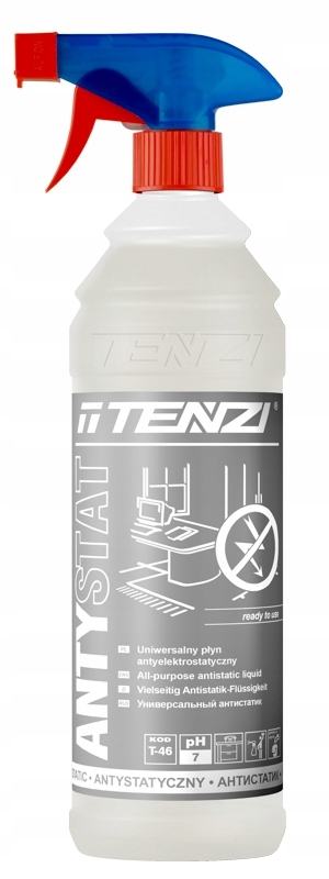 Płyn antyelektrostatyczny. Uniwersalny preparat antystatyczny. Niezastąpiony w domu w samochodzie na stanowisku pracy. Rozprasza nagromadzone ładunki elektrostatyczne oraz zapobiega ich ponownemu gromadzeniu się. Eliminuje nieprzyjemne a nawet groźne dla zdrowia wyładowania. Bardzo wydajny nie wymaga spłukiwania. Pielęgnuje ogranicza w dużym stopniu odkładanie się brudu kurzu roztoczy. Korzystnie działa na środowisko i ludzi. Bezpieczny dla otoczenia. Biodegradowalny.