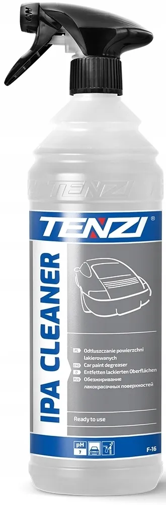 TENZI IPA CLEANER to płyn służący do odtłuszczenia i oczyszczania lakieru przed nakładaniem wosków i sealantów. Gwarantuje lepsze wiązanie warstwy woskowej z powierzchnią dzięki czemu utrzymuje się ona znacznie dłużej. Doskonale usuwa resztki past polerskich dlatego świetnie nadaje się do inspekcji stanu faktycznego lakieru w trakcie i po jego wypolerowaniu np. przy pomocy kontroli świetlnej. Jest w pełni bezpieczny dla wszelkich typów lakierów elementów z tworzyw sztucznych gumowych i szklanych.