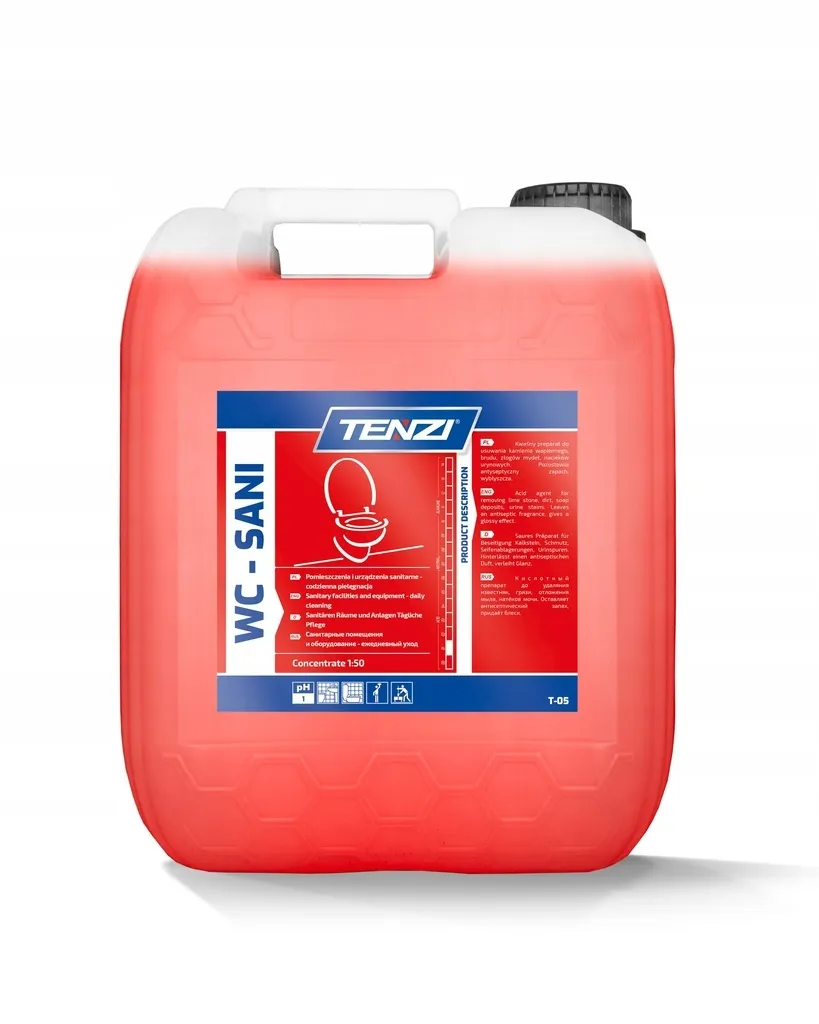 Codzienne mycie sanitariatów szybko brudzących się. Skoncentrowany kwaśny preparat myjący skutecznie usuwa kamień wapienny brud złogi mydeł rdzę nacieki urynowe dobrze przylega do powierzchni pionowych pozostawia charakterystyczny antyseptyczny zapach nabłyszcza nie powoduje uszkodzeń powierzchni nadaje się do mycia bieżącego wszystkich powierzchni i materiałów kwasoodpornych w obszarze zmywania.