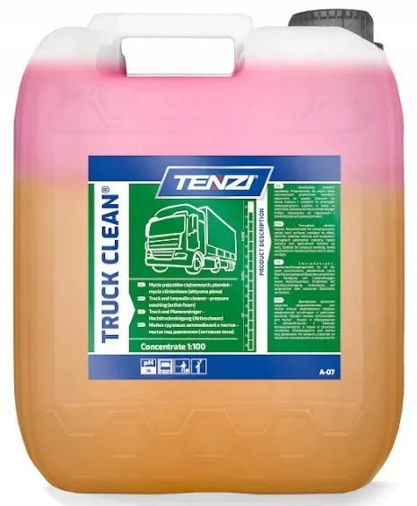TENZI TRUCK CLEAN to silny koncentrat alkaliczny o szerokim zakresie zastosowania. Przeznaczony do mycia skrajnie zabrudzonych powierzchni twardych odpornych na alkalia. Możliwość wykorzystania do mycia maszyn i urządzeń w przemyśle motoryzacyjnym ciężkim a także w rolnictwie.