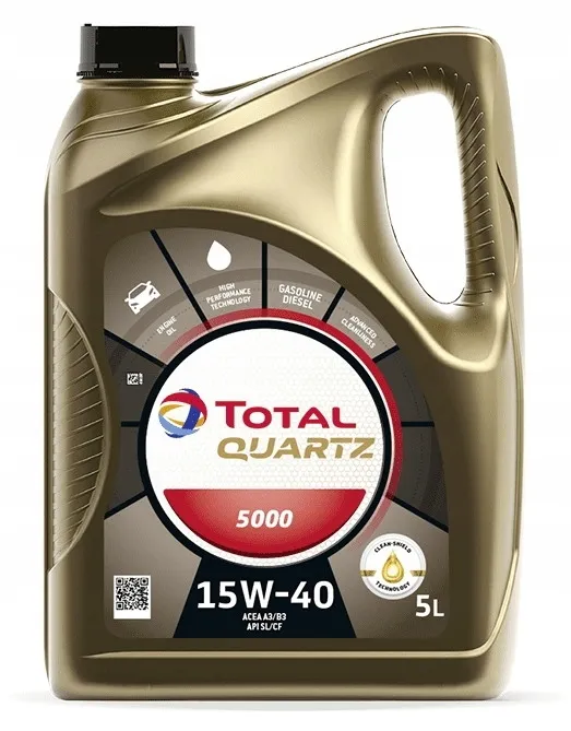 Mineralny olej TOTAL QUARTZ 5000 15W40 jest olejem przygotowanym do silników benzynowych oraz Diesla. Dopuszczony do stosowania w samochodach osobowych dostawczych oraz lekkich ciężarówkach. Olej ten zalecany jest do silników z turbodoładowaniem.