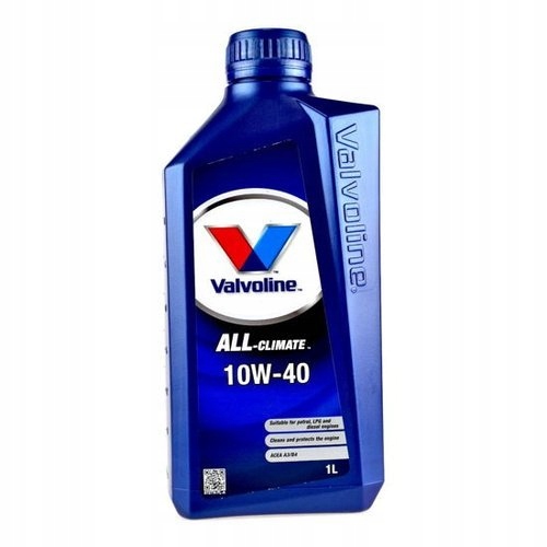 Przeznaczony do samochodów osobowych lekkich ciężarowych dostawczych i pojazdów z napędem na 4 koła. Spełnia najpopularniejszą normę A3/B4 i API SN/CF. Wysoka zawartość dodatków uszlachetniających oraz wysokiej jakości baza olejowa sprawiają że Valvoline All-Climate 10W40 jest odpowiedni do zastosowania w wielu różnych pojazdach. Olej skutecznie zabezpiecza silnik przed zużyciem. Eliminuje problem zapychania pierścieni tłokowych nagarem.