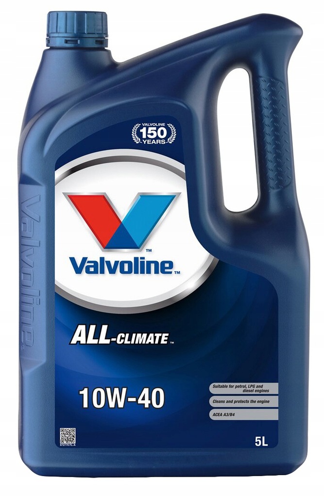 Przeznaczony do samochodów osobowych lekkich ciężarowych dostawczych i pojazdów z napędem na 4 koła. Spełnia najpopularniejszą normę A3/B4 i API SN/CF. Wysoka zawartość dodatków uszlachetniających oraz wysokiej jakości baza olejowa sprawiają że Valvoline All-Climate 10W40 jest odpowiedni do zastosowania w wielu różnych pojazdach. Olej skutecznie zabezpiecza silnik przed zużyciem. Eliminuje problem zapychania pierścieni tłokowych nagarem.