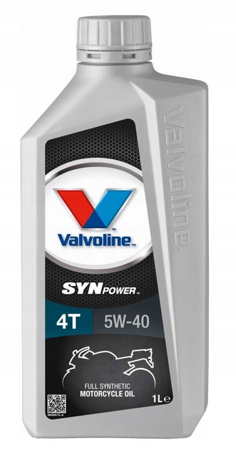 Valvoline SynPower 4T 5W-40 to wysokiej jakości w pełni syntetyczny olej do silników czterosuwowych skuterów i motocykli. Produkt jest zalecany do wszystkich skuterów i motocykli w których specyfikowane są płyny API SN lub JASO MA. SynPower 4T 5W-40 jest specjalnie opracowany aby przewyższyć wymagania wszystkich wiodących producentów silników i zapewnia doskonałą ochronę przed zużyciem i nagromadzeniem się nagaru.