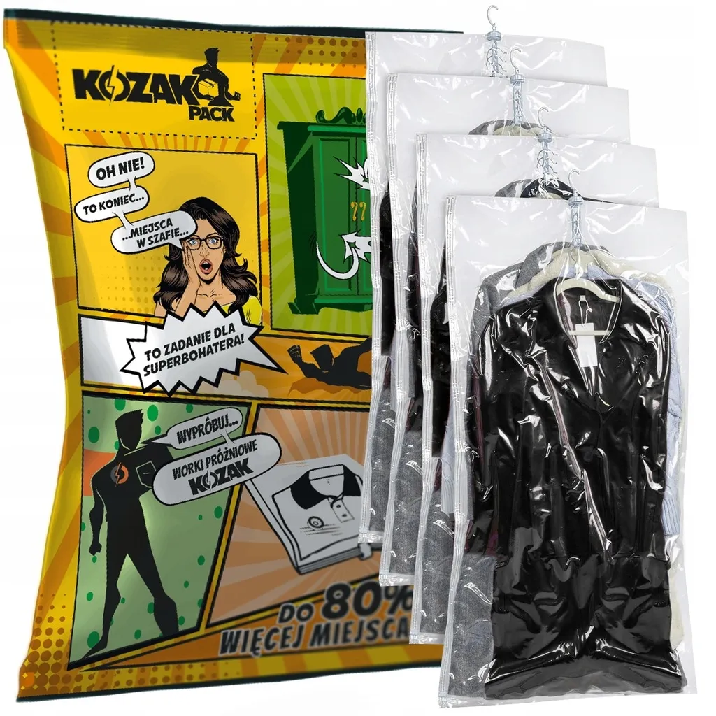 Worki próżniowe Kozak pozwolą Ci znaleźć dodatkowe miejsce w szafie. Dzięki możliwości włożenia kilku sztuk odzieży do jednego worka będziesz w stanie zmiejszyć ich objętość nawet o 80%.