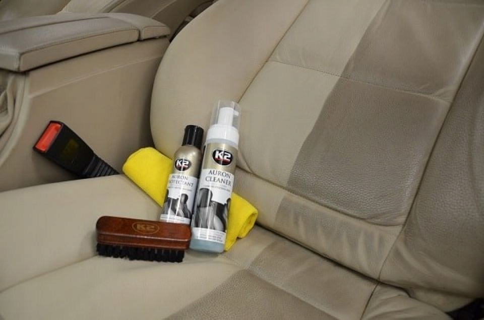 Wskazówka: Aby utrzymać skórzaną tapicerkę w optymalnej kondycji zaleca się jej regularne czyszczenie i zabezpieczenie (raz na 3 miesiące) przy pomocy zestawu K2 Auron. W przypadku skór silnie zabrudzonych lub nigdy nieczyszczonych należy zastosować produkt o zwiększonej sile czyszczenia - K2 Auron Strong